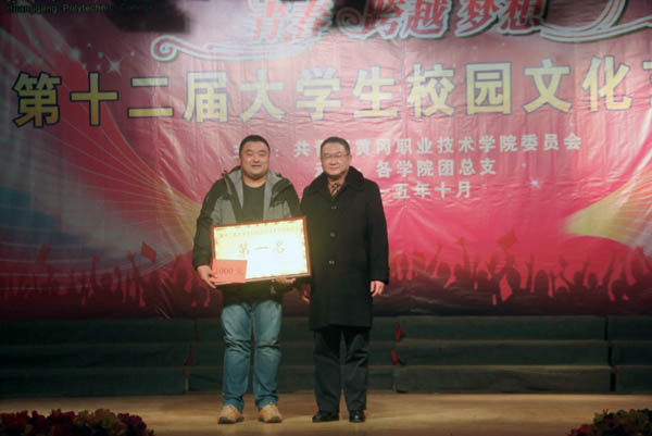 2015年12月21日18:20,beat365官网第十二届大学生校园文化艺术节颁奖晚会在大学生活动中心隆重举行。校长姜安心,党委委员、工会主席郑柏松,学工处处长熊楚舒,团委书记杨勇及各教学学院党总支副书记、团总支书记、辅导员老师、各学院学生代表共1000余人参加了本次颁奖晚会。