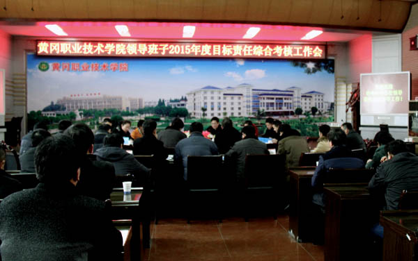 2015年12月21日上午,市委考核评价工作小组一行9人来beat365官网开展2015年度县级领导班子和领导干部目标责任考核工作。首先举行考核工作干部职工大会,由考核组组长、黄冈市人防办党组书记查文胜主持。全体校领导、例会人员、医学院其他班子成员及教职工代表近60人参加了干部职工大会。