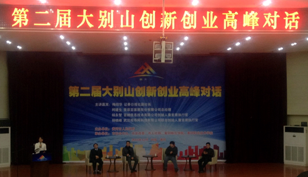 下午2:30,第二届大别山创新创业高峰对话在黄冈师范学院学术交流中心举行。证券日报社副社长梅绍华、武汉校导网科技有限公司联合创始人兼首席执行官杨晓峰、百纳信息技术有限公司创始人兼首席执行官杨永智、索菲亚家居股份有限公司总经理柯建生,分别以“互联网时代的新思想”、“人之所以能,是因为相信能”、“CEO是怎样炼成的”、“定制规模化企业的进化思考”为主题开展演讲,报告精彩纷呈,掌声雷动。
