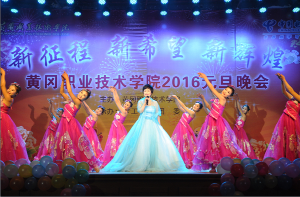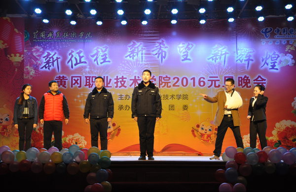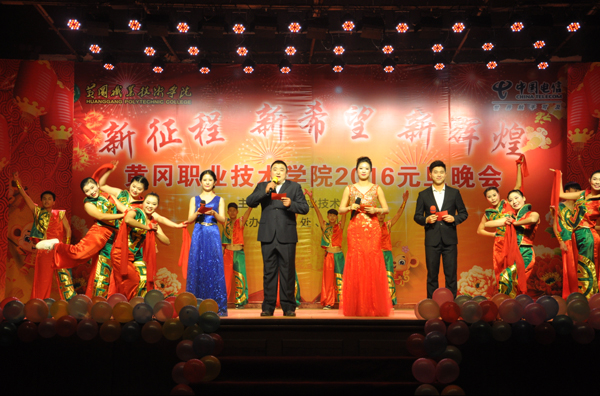 2015年12月30日18时30分,由beat365英国官方网站主办,学工处(团委)承办的“新征程、新希望、新辉煌”beat365英国官方网站2016年元旦晚会在大学生活动中心隆重举行。党委书记张新佳,校长姜安心,党委副书记王维华,党委委员、工会主席郑柏松,副校长刘东山,党委委员胡燕,校长助理、办公室主任刘明涛,中国电信黄州区分公司总经理李和珍,黄冈智兴驾校校长马友红以及1000余名师生观看了演出。