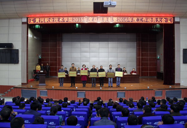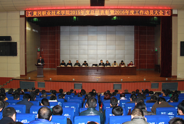 校长姜安心作了题为《发扬成绩 加快发展 推进改革 提升实 力为建设“省内一流、国内知名”优质高等职业院校而奋斗》的工作报告。报告指出,2015年,在市委、市政府和省教育厅的正确领导下,学校新一届党委积极调整工作思路,审时度势确立新的发展目标,团结、率领全校广大师生员工,认真贯彻执行国家教育方针政策,积极践行“三严三实”工作要求,突出“党建、改革、规划”三大工作重点,通过实施抓好“主题教育”,强化思想引领;抓好“思路调整”,启动新的创业;抓好“改革布局”,增强发展后劲;抓好党建工作,坚持从严治党;抓好精神文明建设,提升校园文化软实力;抓好教育教学改革,提高人才培育质量;抓好学生素质教育,培养德才兼备人才;抓好服务工作,助力区域经济社会发展;抓好服务保障,全面提升管理水平,学校各项工作顺利推进,取得了显著成绩,学校影响力和美誉度再度提升。报告强调,2016年,学校工作的总体目标是:坚持以人为本,立德树人,全面加强党建、全面深化改革、全面改进管理,坚持内涵发展,抓教学提质量、抓招生保运转、抓项目促发展,抓创优强实力,力争立项建设湖北省首批优质高等职业院校。工作报告围绕学校今年工作总体目标,强调要加强党建工作,深化文明创建,提升团队战斗力和思想文化建设实力;要深化内部改革,全面规范管理,提升学校治理水平和管理实力;要坚持立德树人,潜心教书育人,提高人才培养质量和教育实力;要提高思想认识,强化工作措施,提高招生就业实效和市场竞争实力;要坚持优化服务,加强科技引导,提升社会服务的含金量和科技实力;要争取多立项目,实施开源节流,提高学校健康发展能力和财源建设实力。