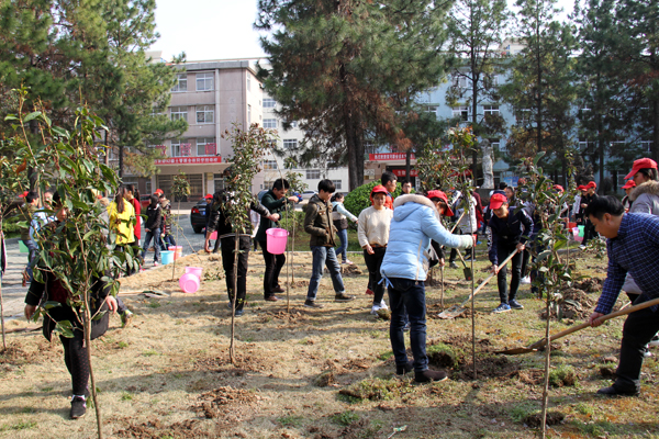 腾飞园内植丹桂 春季植绿八月香 来源:后勤服务与保障处 作者:边学飞 发布时间:2016-04-16 09:02:46 浏览次数: 次 【字体:小 大】 坚持生态和谐理念,优化育人环境。3月11日下午,党委书记张新佳、校长姜安心带领师生在学校南区腾飞园义务植树、建园添香。 植树现场干劲十足,气氛热烈,大家手持铁锹,挖土、扶树苗、培土、拎水,将150余颗充满生机和希望的桂花苗栽种在校园内。 此次活动后勤服务与保障处精心组织,其主旨是提高师生义务植树的意识,激发师生热爱校园、热爱劳动的情感,感受美化校园的意义,共享桂花香满校园的喜悦。 分享到: 【打印正文】