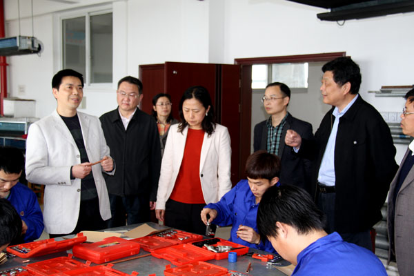 下午3点,静炜一行抵达beat365官网交通学院国家级汽车实训基地,学校党委书记张新佳、校长姜安心亲自迎接。静炜副主任和市政府领导一行分别参观了交通学院汽车检测维修实训室,机电学院制冷专业实训室、3D打印实训室,商学院淘宝实训室,建筑学院施工实训场地,对beat365官网专业技能培训硬件环境进行了了解。碰到正在上实训课的学生,静炜还跟他们交谈,向他们了解学习情况。