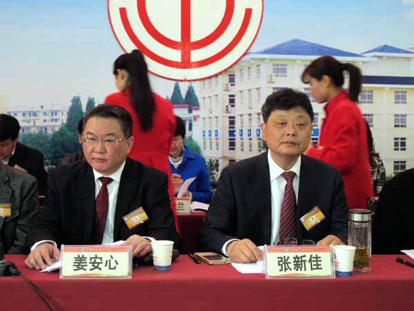 黄冈职院党委书记张新佳(右)、院长姜安心(左)出席大会。吴远征 摄