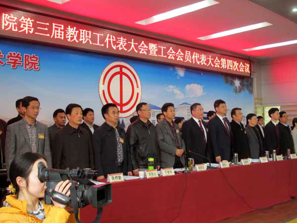 黄冈职院领导和会议代表起立齐声高唱国歌和校歌,大会胜利闭幕。吴远征 摄