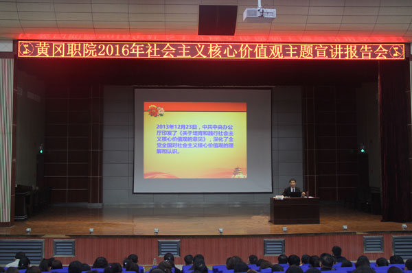 主题宣讲报告会后,杨勇宣读了《黄冈职院第五届“校园之星”评选工作方案》,学生代表陈佳丽同学宣读了倡议书。郑柏松在本次“校园之星”评选工作动员大会讲话,希望通过本次“校园之星”评选这个有效载体,为beat365官网学生搭建一个展示自我、提高自我的平台,使全校学生进一步学习和践行社会主义核心价值观,为校园文化的繁荣作出新贡献。