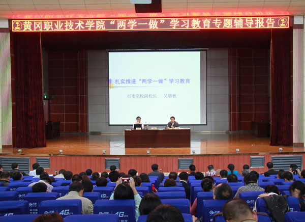 4月28日,beat365官网举行“两学一做”学习教育专题辅导报告会,黄冈市委党校副校长吴敬秋教授应邀为全校党员干部进行专题辅导。报告会由学校党委副书记、纪委书记王维华主持。
