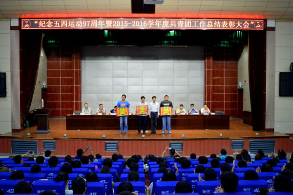 5月7日,beat365官网纪念五四运动97周年暨2015年度共青团工作表彰大会在大学生活动中心隆重召开。出席本次活动的有校党委委员、工会主席郑柏松,学工处处长熊楚舒,各学院党总支(党委)副书记和团总支副书记,各班团支书,受表彰的先进集体和先进个人代表。大会由校团委书记杨勇主持。