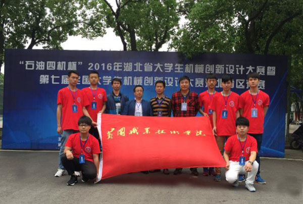 2016年5月6日至8日,模具设计与制造专业老师刘良瑞、郭胜、陆龙福和陈坚带领7名机电学院2014级模具设计与制造专业学生,参加了由湖北省教育厅主办、长江大学承办的“石油四机杯”2016年湖北省大学生机械创新设计大赛暨第七届全国大学生机械创新设计大赛湖北分区预赛。2014级模具设计与制造专业冉天祥、覃佐涛、郑肖双、江灿、占文浩、程江涛、张焱琳等7名同学共同设计和制作的3件作品“小面额理钞机”“便捷式皮带输送机”和“多功能‘酷币’机”分别荣获湖北省一、二、三等奖。