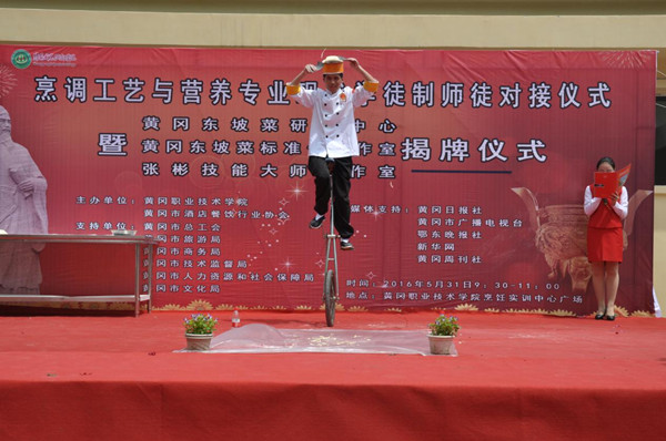 在对接仪式上,烹饪专业师徒配合,分别表演了长寿一根面、龙须拉面、面团吹气球、关公扯面、独轮车头顶刀削面、川剧变脸、西瓜灯雕刻等节目,充分展示了烹饪艺术与技术的融合。