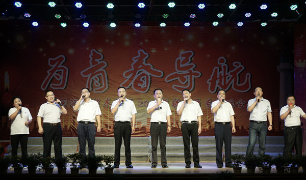 2016年6月20日晚上7点整,由学生工作(部)处、团委主办的“为青春导航”——beat365英国官方网站第四届辅导员专场晚会在大学生活动中心成功举行。校长姜安心,党委委员、工会主席郑柏松,校内各职能部门负责人以及各教学学院书记、副书记,与全校辅导员老师、学生代表一起观看了本场晚会。