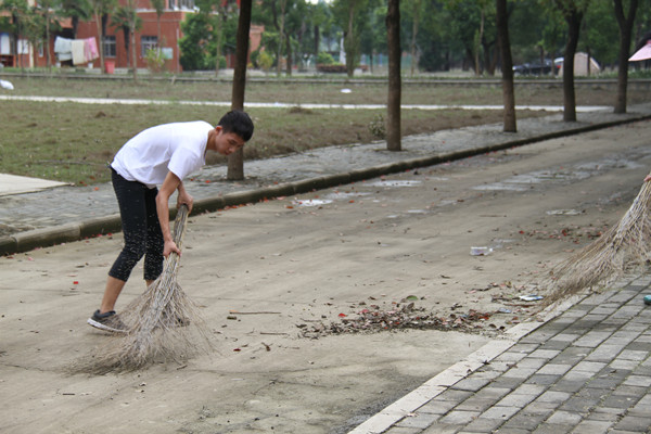 学校的灾情同样也牵动着学子们的心,多名学生闻悉学校灾情,主动从家中赶回学校参与救灾工作。电子商务2015级的石振柳,农村中医2015级的蔡昌俊、胡凯锐,临床201501班的李倩倩,电商201502班的朱自腾,助产201504班的程蕾,工监201401班的周聪,成建工201401班的何世恒,成会计201401班的罗嘉慧,会计201401班的朱梦玲等等,甚至家住安徽合肥的智能物流201501班储著超同学,闻讯后也同样赶来。他们中有的是学生党员,有的是学生干部,还有的只是众多学生中的普通一员,他们在学校有难之际挺身而出,与老师一起顶风冒雨清扫校园,奋战在灾后重建的一线,真正体现了黄职学子爱校如家的情怀。