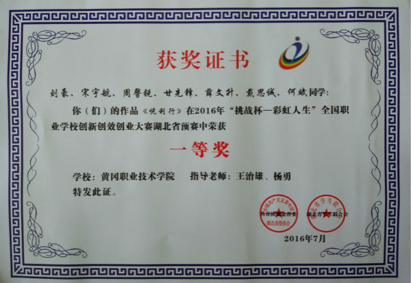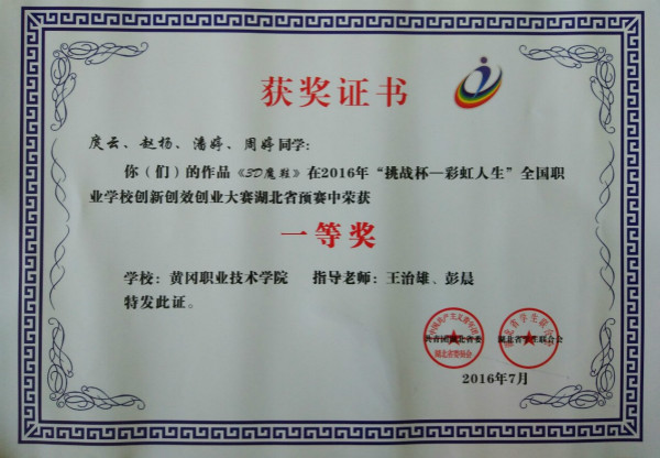 湖北省预赛自今年4月份启动以来,机电学院领导高度重视,多次召开专题研讨会。在校团委领导的关心与指导下,工业设计专业学生刘豪、庹云、甘先锋、潘婷等积极备战,最终完成创意类作品2项,创业类作品1项。他们的优异成绩得益于beat365官网教育教学改革的不断深入,得益于工业设计专业“工作室制”人才培养模式的实施,是学校注重学生创新创业能力培养的具体体现。