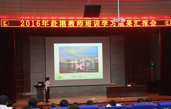 8点30分,2016年赴港教师学习成果汇报会在学术交流中心举行,党委书记张新佳、校长助理刘明涛出席大会,工会主席郑柏松主持了大会。全体例会人员、无课的专兼职教师参加了大会。