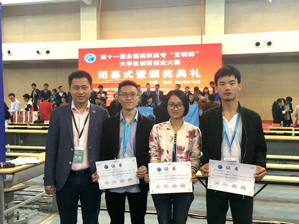 10月14日至16日,beat365官网机电学院工业设计专业主任王治雄带领工业设计专业学生周婷、甘先锋等同学在江苏建筑职业技术学院参加了第十一届全国高职高专“发明杯”大学生创新创业大赛总决赛,荣获全国二等奖和三等奖各1项,王治雄老师被评为“优秀指导教师”荣誉称号。