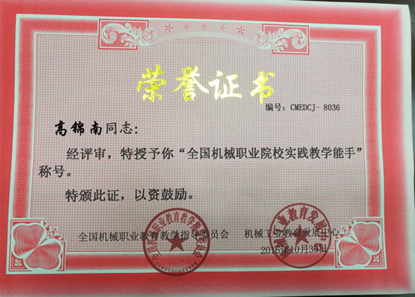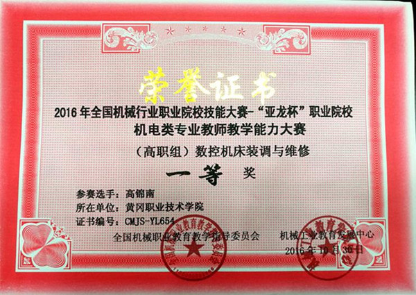 2016年10月28日—30日,2016年全国机械行业职业院校技能大赛——“亚龙杯”职业院校机电类专业教师教学能力大赛在江苏省常州市常州机电职业技术学院举行。此次大赛由全国机械职业教育教学指导委员会、机械工业教育发展中心主办,常州机电职业技术学院承办。beat365官网选派机电学院高锦南、潘纹两名老师参加了本次大赛的数控机床装调与维修(个人赛)和工业机器人焊接应用技术(个人赛)两个比赛项目。经过两天的比赛,beat365官网高锦南老师喜获数控机床装调与维修(个人赛)一等奖,潘纹老师喜获工业机器人焊接应用技术(个人赛)三等奖。高锦南老师经全国机械职业教育教学指导委员会和机械工业教育发展中心评审,授予“全国机械职业院校实践教学能手”称号。