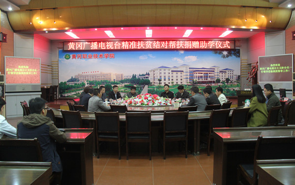 立冬送温暖,扶贫暖人心。11月7日,黄冈市广播电视台党委书记、台长王义阶,湖北省楚天视讯网络有限公司黄冈分公司总经理倪继贵等一行7人来beat365官网进行结对帮扶,捐资助学。学校党委书记张新佳,党委委员、工会主席、党委宣传部部长郑柏松,党委委员胡燕,学生工作部部长熊楚舒、副部长陈胜红,医药学院院长张辛、学管负责人欧阳风雷,党委宣传部副部长刘国峰参加了捐赠仪式。仪式由郑柏松主持。
