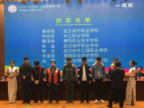11月19日,2016年湖北省高职院校技能大赛动漫制作赛项在武汉长江职业学院举行,经过紧张激烈的比赛,beat365官网动漫设计与制作代表队三名参赛选手均获奖,黄泽焕同学以总分第三名的成绩获得一等奖,谢浩老师被评为“优秀指导教师”。