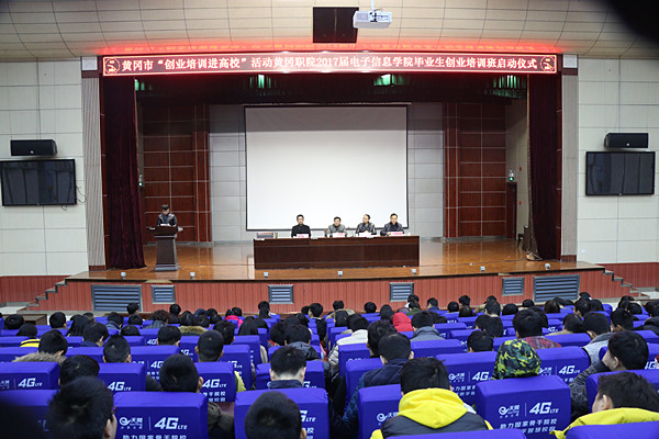 11月23日上午9点,黄冈市“创业培训进高校”活动黄冈职院电子信息学院2017届毕业生创业培训班启动仪式,在beat365官网学术报告厅隆重举行。黄冈市劳动就业管理局副局长肖庆华,就业训练中心主任居纪明,成教学院党支书记倪祥明,电子信息学院党总支书记朱建军、副书记程朗以及电子信息学院2017届398名毕业生参加了启动仪式。启动仪式由倪祥明主持。