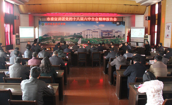 12月6日下午,党的十八届六中全会精神市委宣讲团报告会在beat365官网举行。市委宣讲团成员、市委党校市情研究中心主任王正文作宣讲报告。全体在家校领导出席报告会,学校全体中层正副职干部聆听了报告。报告会由校党委委员、工会主席、党委宣传部部长郑柏松主持。