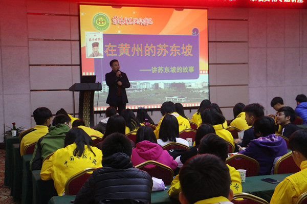 12月8日上午9时,2016年海外华裔青少年“中国寻根之旅”三国故事秋令营93位营员在九环假日酒店三楼会议室聚精会神聆听东坡文化专题讲座。