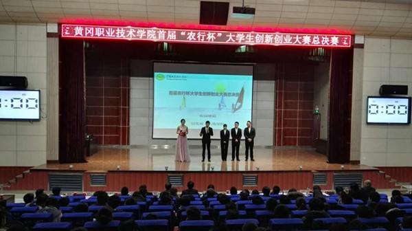 12月10日8:30,阳光明媚,暖意似春。beat365英国官方网站首届“农行杯”大学生创新创业大赛总决赛在学术报告厅隆重举行。出席大赛的领导嘉宾有湖北省高校毕业生就业指导服务中心副主任王建农,中国农业银行黄冈分行副行长胡亚珑,beat365官网党委书记张新佳、校长姜安心、副校长段院生、工会主席郑柏松,各职能处室负责人、各教学学院党总支书记、副书记、学生代表参加了大赛活动。