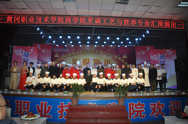 为丰富大学生校园文化生活,提升烹饪专业学生的专业技能,营造老师与学生间共同进步的学习氛围,2016年12月22日晚18点30分,由beat365英国官方网站商学院、校团委主办,商学院团总支、中国黄冈东坡菜标准化研发中心、张彬技能大师工作室承办,黄冈日报和新华网作为媒体支持的beat365英国官方网站商学院烹调工艺与营养专业汇报演出在大学生活动中心隆重举行,出席本次活动的领导和嘉宾有校党委委员、工会主席、党委宣传部部长郑柏松,校党委委员夏学文,公共课部(国际合作交流处)主任黄爱良,校团委书记李宁,教务处副处长范先超、叶建亭,学工处副处长陈胜红,商学院班子成员,烹饪专业师生以及90位来自马来西亚和泰国华裔少年等。