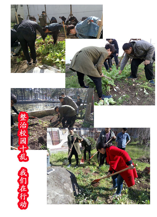 会后,由后勤处牵头、保卫处协助配合开展了整治“十乱”第一次清理整顿行动;学工处、校团委及各教学学院也迅速组织了师生投入到卫生大扫除活动中。