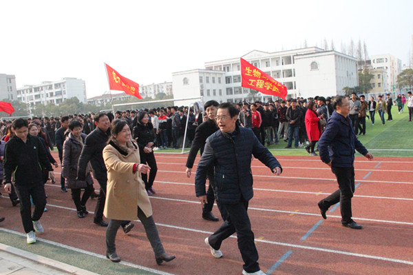 3月7号下午4点,学校中区运动场彩旗飘飘,人头攒动,热情飞扬。为贯彻落实全国体育工作会议精神和教育部、国家体育总局、共青团中央关于开展亿万学生阳光体育运动的决定,全面实施《国家学生体质健康标准》,提升全体教职员工身体素质,第九届阳光体育暨迎“三八”教职工健步行活动启动仪式在此举行。校党委副书记王维华,校党委委员、工会主席郑柏松,校工会常务副主席熊亚芬,校体育委员会办公室主任、公共课部主任黄爱良,校工会、学工处(团委)、公共课部、各教学学院领导、辅导员、教师代表和学生运动爱好者,共2000余人参加了活动。启动仪式由王维华主持。