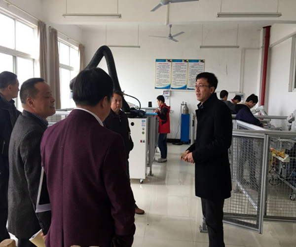 金毅一行先后听取了夏学文对学校的整体情况介绍以及夏继军对项目建设方案的汇报,随后考察了机电学院工业机器人实训基地。他对beat365官网工业机器人专业建设、师资团队建设等给予了充分的肯定,认为通过该项目的实施,必将会进一步提升beat365官网工业机器人专业的综合实力。他希望我们要抓住机遇,在师资培养、课程开发、学生培养及社会培训等方面开展广泛的合作,从而提高工业机器人应用人才培养的质量。