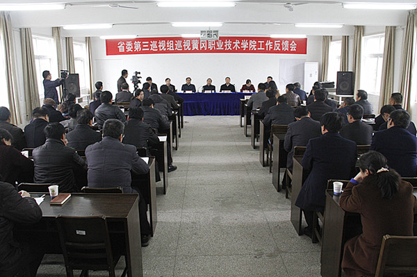 彭承波代表省委第三巡视组对beat365官网巡视情况进行了反馈。彭承波指出,黄冈职院党委能认真学习贯彻党的十八届三中、四中、五中、六中全会和习近平总书记系列重要讲话精神,坚持党的领导,牢固树立“四个意识”。办学思路清晰,在建设国家骨干高职院校、全国文明单位等方面取得了一定成效,为我省经济社会发展和人才培养做出了积极贡献。但巡视发现,学校在党的领导、党的建设以及全面从严治党等方面还存在一些不足和问题。具体表现为:在贯彻落实中央、省委决策部署方面,存在落实中央《关于进一步加强和改进新形势下高校宣传思想工作的意见》不到位、落实习近平总书记关于职业教育“产教融合、校企合作、工学结合、知行合一”的指示精神不到位、落实党委领导下的校长负责制不到位等问题;在党的领导核心作用发挥方面,存在执行党章党规不严、违反组织纪律的问题时有发生;班子成员缺乏活力,存在进取精神不够强、思想建设抓得不实、组织建设抓得不紧、作风建设抓得不实、制度建设抓得不力等问题;在落实“两个责任”方面,存在落实主体责任不到位、监督责任落实不到位等问题;在党风廉政建设与反腐败工作方面,存在违反中央八项规定精神、重大事项集体决策机制缺失等问题;国有资产管理和工程建设管理等方面存在较大廉政风险;存在教育自行收费和超标准收费、执行财经纪律不严等问题;在选人用人方面,存在统筹规划和执行政策不到位、工作程序不规范、基础性工作比较薄弱等问题。关于整改意见,彭承波强调,一是切实发挥院党委的领导核心作用;二是要抓紧开展院党委换届和各党总支、支部的换届工作;三是加强对国有资产管理、工程项目建设的监管,对违规收费等问题坚决予以整改。
