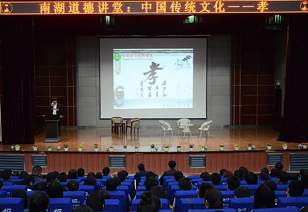 3月27日晚,由学工处、团委主办,医药学院团总支承办的“南湖道德讲堂——孝之践行”活动在学术报告厅举行。学校党委委员、工会主席、宣传部长郑柏松,学工处副处长吴冬、组织科冯爱利,各教学学院党总支副书记、团总支书记、2016级辅导员及600多名学生参加了活动。活动由医药学院冯健同学主持。