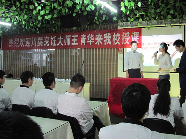 3月28日,应商学院邀请,著名川菜烹饪大师、九州川菜餐饮管理有限公司技术顾问王青华来beat365官网南苑烹饪实训基地授课。商学院烹饪专业团队、烹饪14、15、16级100余名学生参与此次活动、黄冈电视台《东坡美食汇》栏目全程参与报道。