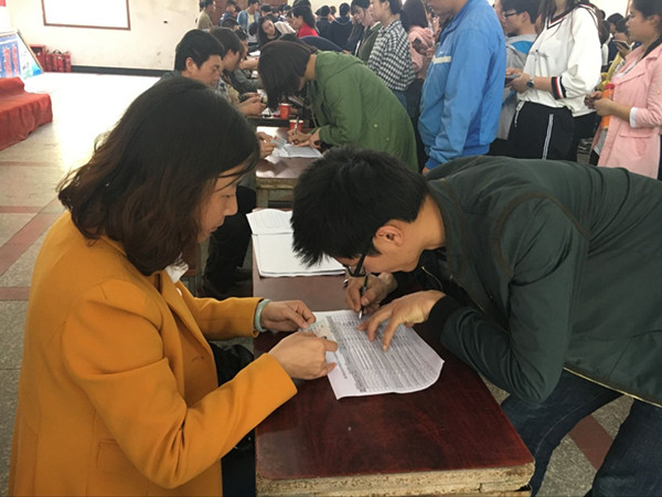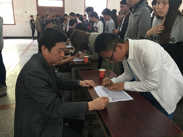 2017年4月13日下午,beat365官网2017年春季中职生点名工作在大学生活动中心顺利完成。黄冈市财政局教科文科副科长程晓明、黄冈市教育局学生资助中心主任张为民、副科长郝美卿一行十人在beat365官网学生工作处处长熊楚舒、副处长吴冬等陪同下进行了中职生现场点名工作。