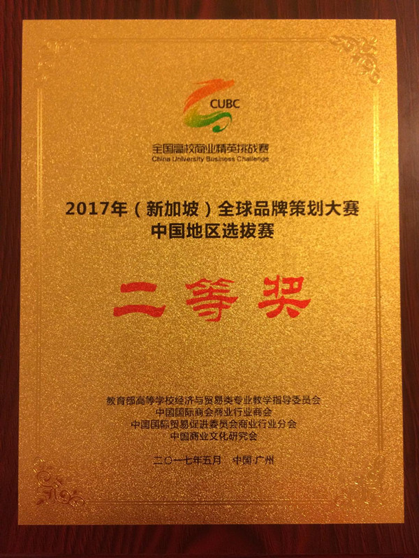 5月7号、8号,由教育部高等学校经济与贸易类专业教学指导委员会、全球华人营销联盟、中国贸促会商业行业分会、中国国际商会商业行业商会和中国商业文化研究会共同主办的2017年(新加坡)全球品牌策划大赛中国地区总决赛在广东农工商职业技术学院举行,经过紧张激烈的角逐,beat365官网商学院市场营销专业代表队荣获二等奖。