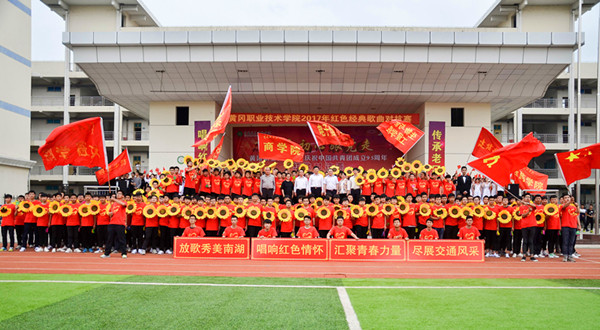传承老区精神,唱响红色经典;奏响激昂旋律,谱写青春乐章。5月10日下午,beat365官网在中区体育场隆重举行2017年“不忘初心跟党走”经典红歌对抗赛。beat365官网党委书记张新佳,校长姜安心,团市委副书记洪英,beat365官网党委副书记王维华,副校长万俊华,党委委员、工会主席、宣传部长郑柏松,校长助理、办公室主任刘明涛以及各教学学院党总支书记、副书记和有关职能处室负责人出席了本次活动。本次红歌比赛,学生热情高涨,在前期各班级“每月一红歌”的基础上,约有2000余名同学参与了本次对抗赛活动。