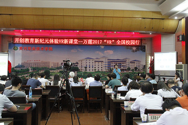 2017年5月13日,黄冈职院——万霆科技“校企合作VR云体验中心”顺利落成暨“开创教育新纪元,体验VR新课堂”——万霆2017“VR”全国校园行湖北站研讨会在beat365官网隆重举行,中国建设教育协会专家委员会副主任杜国城、beat365英国官方网站党委书记张新佳、杭州万霆科技有限公司董事长吴通、副总裁康乐,校党委委员夏学文出席,来自湖北经济学院、湖北第二师范学院、黄冈师范学院、武昌理工学院等6所本科院校和武汉船舶职业技术学院、武汉铁路职业技术学院、鄂州职业大学、beat365英国官方网站等18所高职院校建筑院系院长(主任)、专业负责人和一线骨干教师共70余人参加,荆楚网、黄冈日报、黄冈电视台等新闻媒体到场采访。