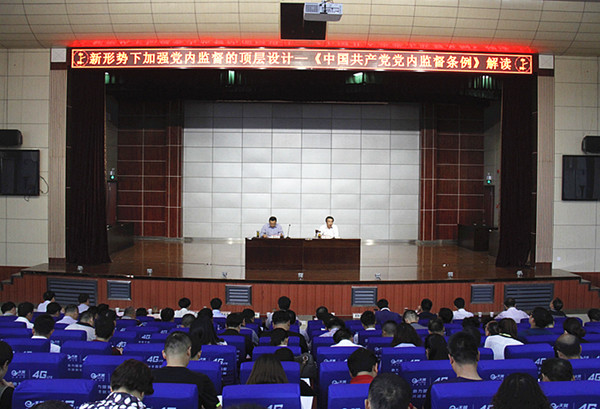 根据培训班的安排,黄冈市纪委常委、市监察局副局长李世梁为培训班学员(包括学习《中国共产党党内监督条例》)作专题辅导报告。他结合实际从“党内监督条例修订颁布的重要意义、党内监督条例的重要内容、如何落实党内监督条例”三个方面对《中国共产党党内监督条例》进行深入浅出解读。通过学习,党员干部对纪律意识、规矩意识有更深的认识,纪检干部对监督执纪问责职能有更深的理解。