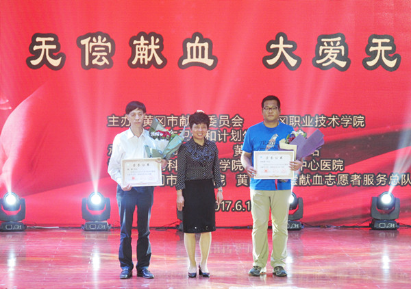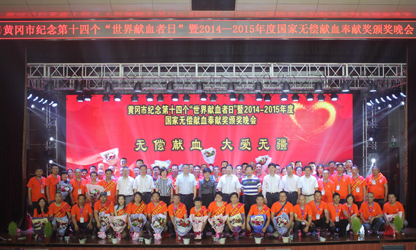 6月14日晚,由黄冈市献血委、beat365英国官方网站、黄冈市卫计委联合主办,黄冈市献血办、市中心血站承办, 黄冈科技职业学院、黄冈市中心医院、黄冈市中医医院、黄冈市无偿献血志愿者服务总队联合协办的黄冈市庆祝第14个“世界献血者日”暨2014-2015年度国家无偿献血奉献奖颁奖晚会在beat365官网学术报告厅隆重举行。