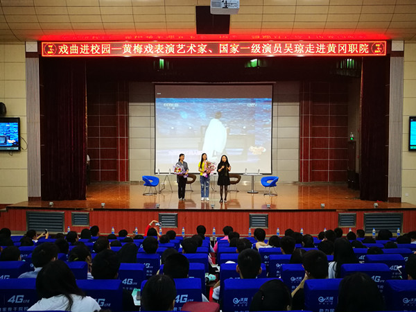 为传承中华民族传统文化,培养青年学生对黄冈历史文化艺术的兴趣与爱好,6月17日下午,应学校邀请,我国著名黄梅戏表演艺术家、国家一级演员,有黄梅戏“五朵金花”之一美誉的吴琼老师莅临beat365官网作专题讲座。校党委委员、工会主席、宣传部长郑柏松,团委书记李宁以及600余名青年学生和戏迷朋友参加活动。