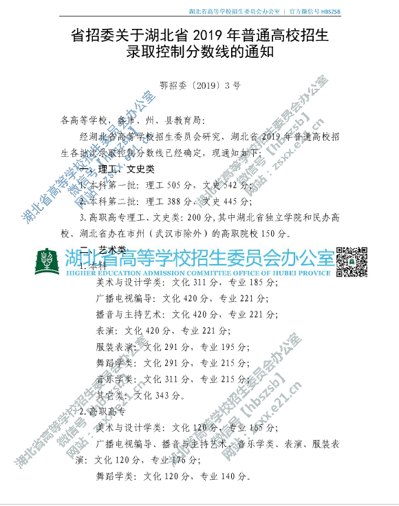 省招委关于湖北省2019年普通高校招生录取控制分数线的通知 省招委关于湖北省2019年普通高校招生录取控制分数线的通知 来源: 作者: 发布时间:2019-06-23 18:01:00 浏览次数: 次 【字体:小 大】 分享到: 【打印正文】
